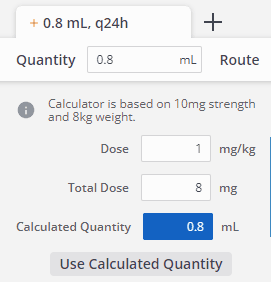 When a dose is entered, the calculator automatically calculates and displays the total mg, mg/kg, and the formulation dose (ie, 1 tablet). If what’s entered is outside the set safety ranges, alerts can help guide the team’s decision on how to proceed.