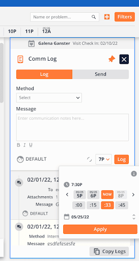 Instead, you can open the Comm Log from any status board or view in the Business Office, search for the specific patient, and log the details of the communication.