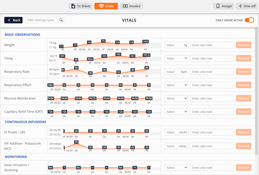 In addition, the Vitals screen is a great place to see how your patient has progressed in the hospital and whether any treatment plan adjustments are needed.