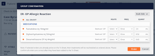 Once a patient is checked in and triaged, custom Product Groups can be ordered to quickly generate a treatment sheet based on the reason for the visit.