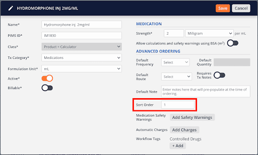 And even better: Sort Order isn’t just a one-time edit. Whatever settings you apply can be applied to all future orders, which is great for medications generally of high importance regardless of the case (like rescue doses of midazolam or diazepam).