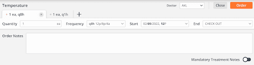 Say you’d like a patient to receive a temperature check every 8 hours, but you also need an hourly check for the first 3 hours after surgery. Simply enter your first frequency for every 8 hours and then add a second frequency for each hour until your chosen end time.