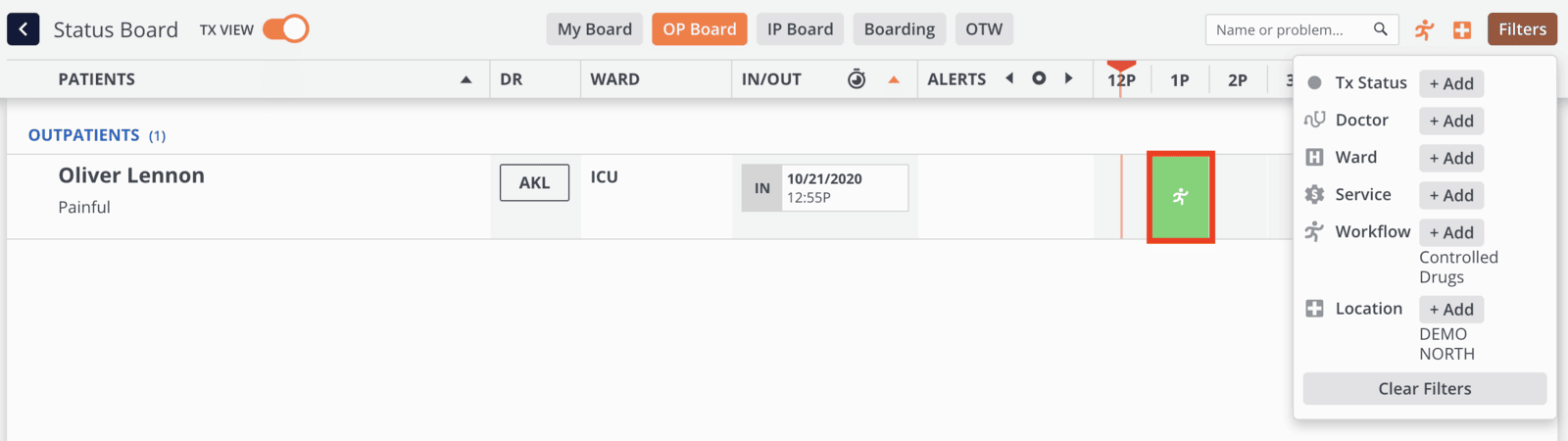 Instinct’s Status Boards are separated into outpatients and inpatients, and you also have your own personal My Board.